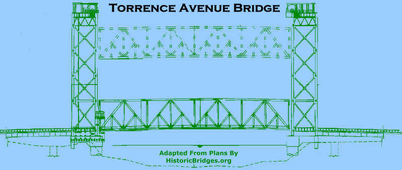 The advertisements shown on this page feature the Torrence Avenue Bridge. Bantam Bearings, which became Torrington Bearings, was advertising the use of their bearings in the Torrence Avenue Bridge in 1941 and 1942. In the photo they use, the previous railroad bridge, a Strauss heel-trunnion bascule bridge, is visible. This bridge is also visible in the historical photo below. Additionally, a railroad swing bridge is visible in the distance in the below photo.