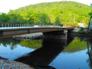 Information and Findings From Pennsylvania's Historic Bridge InventoryDiscussion of Bridge The pin connected, single span, 205'-long, Parker thru truss bridge was fabricated in 1905 and moved to its current location by the state highway department in 1948, replacing an earlier bridge at this location. It is supported on concrete abutments. The bridge has no innovative or distinctive details. It is a late and undistinguished example of its type and design. Pin connected Parker thru truss highway bridges dating from the late 1880s and the 1890s survive throughout the state. Earlier examples better represent the introduction and significance of the technology in northwestern Pennsylvania and in the state. Discussion of Surrounding Area The bridge carries a 2 lane road over a stream in a sparsely developed, forested setting near the village of Lynch. There is a T intersection with SR 666 at the northwest approach. The area does not have historic district potential. Bridge Considered Historic By Survey: No, But Later Re-Evaluated and Found Eligible. Information and Findings From Pennsylvania's Bridge Marketing WebsiteThe Lynch Village Bridge is a 205-foot long, 19-foot wide, pin-connected single-span Parker Through Truss bridge that carries the two-lane SR 1003 (Blue Jay Road) over Tionesta Creek. The ten-panel truss design features four vertical posts on either side of a king post, reinforced by diagonal ties that slope toward the center of the bridge The Eyre Construction Company, a Philadelphia concern, originally fabricated the bridge in 1905 on another site. In 1946, an earlier truss bridge on the site collapsed under the weight of a heavy delivery truck. Rather than construct an entirely new structure, township and county officials worked with the state highway department to relocate the well-built Parker Through Truss Bridge to the site in 1948. The Parker Through Truss became widely popular just prior to the turn of the century, due to its reputation as a durable design for single span bridges over 200 feet in length. PENNDOT and the Pennsylvania Historical and Museum Commission agree that the bridge is eligible for inclusion on the National Register of Historic Places for its technological significance. |