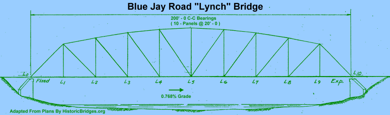 © Copyright 2003-2025, HistoricBridges.org. All Rights Reserved. Disclaimer: HistoricBridges.org is a volunteer group of private citizens. HistoricBridges.org is NOT a government agency, does not represent or work with any governmental agencies, nor is it in any way associated with any government agency or any non-profit organization. While we strive for accuracy in our factual content, HistoricBridges.org offers no guarantee of accuracy. Information is provided "as is" without warranty of any kind, either expressed or implied. Information could include technical inaccuracies or errors of omission. Opinions and commentary are the opinions of the respective HistoricBridges.org member who made them and do not necessarily represent the views of anyone else, including any outside photographers whose images may appear on the page in which the commentary appears. HistoricBridges.org does not bear any responsibility for any consequences resulting from the use of this or any other HistoricBridges.org information. Owners and users of bridges have the responsibility of correctly following all applicable laws, rules, and regulations, regardless of any HistoricBridges.org information.