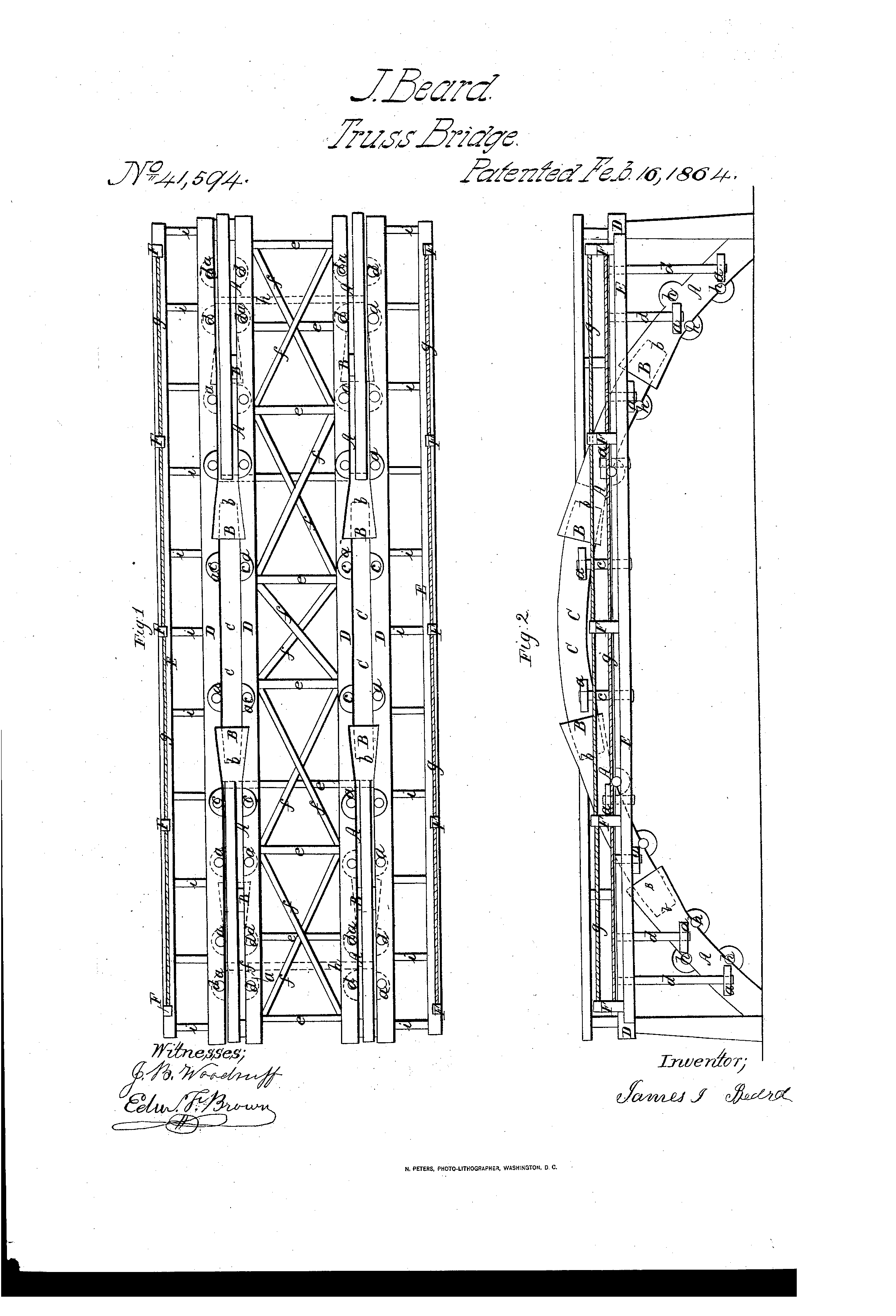 bowstring or tied arch, arch = 2 iron channels, orig = #43,202 of 1864