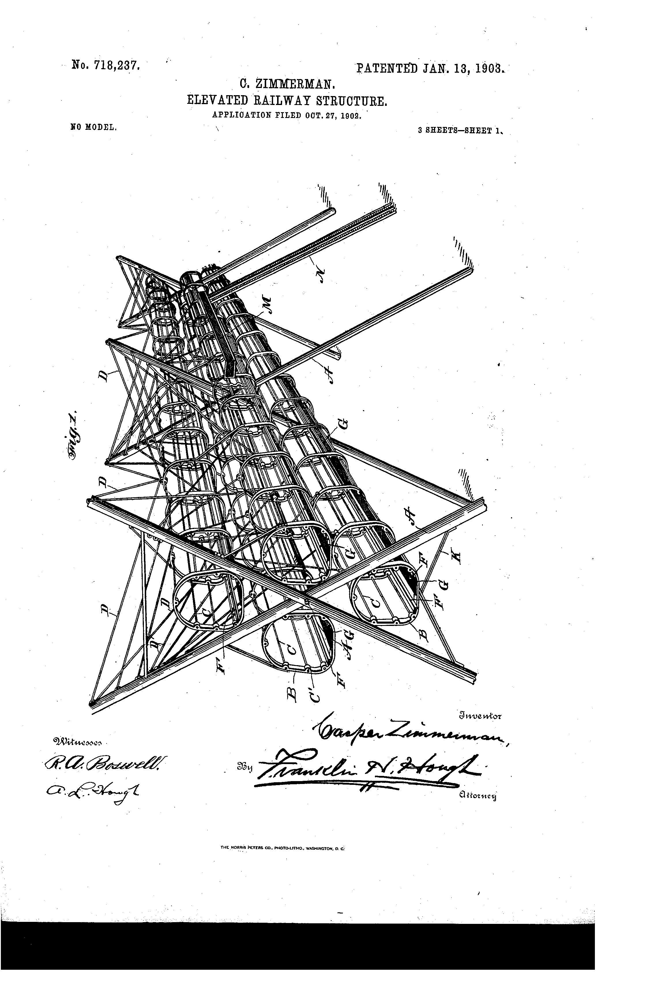 bowstring, arch = pair of I-beams with cover plate, orig #56,043 of 1866